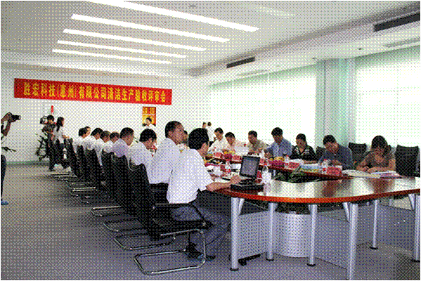 2011年10月19日上午11時,廣東省清潔生產中心、惠州市經信局、環保局、科技局等單位的代表以及特邀能源、環保專家,對我司進行清潔生產審核驗收,技術依托單位——惠州市惠智通節能環保技術服務有限公司的代表、公司董事長特助趙助理、環保課以及各部經理參加了專家評審會。