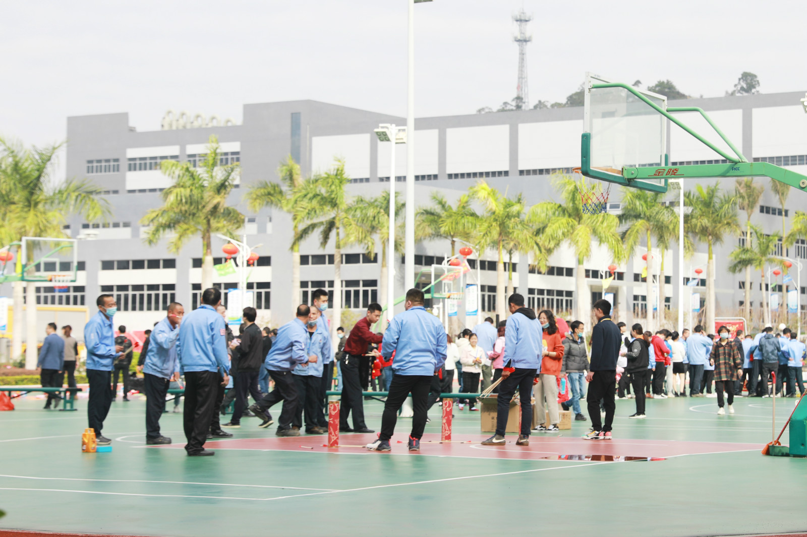 春節(jié)來臨前,掛滿燈籠和彩旗的主干道,洋溢著節(jié)日氣氛的鮮花和公橘子樹,處處呈現(xiàn)出喜慶、祥和的景象。正月初一,一場為就地過年員工舉辦的“情暖新春”活動在籃球場展開,活動精心設(shè)置了歡樂套圈、快樂投籃、趣味競答、精準(zhǔn)投壺、夾元寶、下象棋贏話費(fèi)等項(xiàng)目,還有財(cái)神爺和牛年玩偶現(xiàn)場為大家發(fā)放糖果。