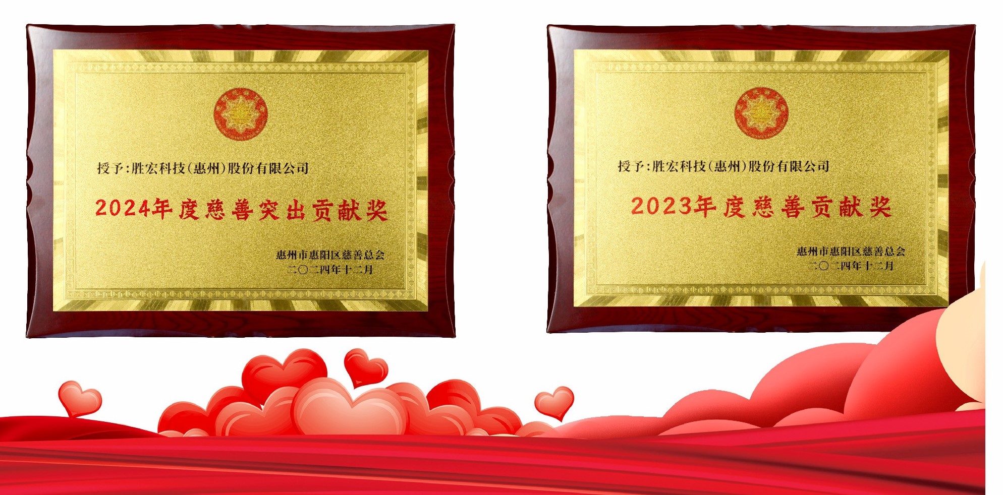 會(huì)上,惠陽區(qū)慈善總會(huì)表彰了2023年度和2024年度在慈善事業(yè)發(fā)展中作出積極貢獻(xiàn)的33家愛心企業(yè)和社會(huì)組織。其中,公司榮獲2024年度“慈善突出貢獻(xiàn)獎(jiǎng)”和2023年度“慈善貢獻(xiàn)獎(jiǎng)”。此次獲獎(jiǎng)不僅是對(duì)我司在慈善領(lǐng)域所做努力的認(rèn)可,也是對(duì)我司高度的社會(huì)責(zé)任感和崇高的公益精神的肯定。