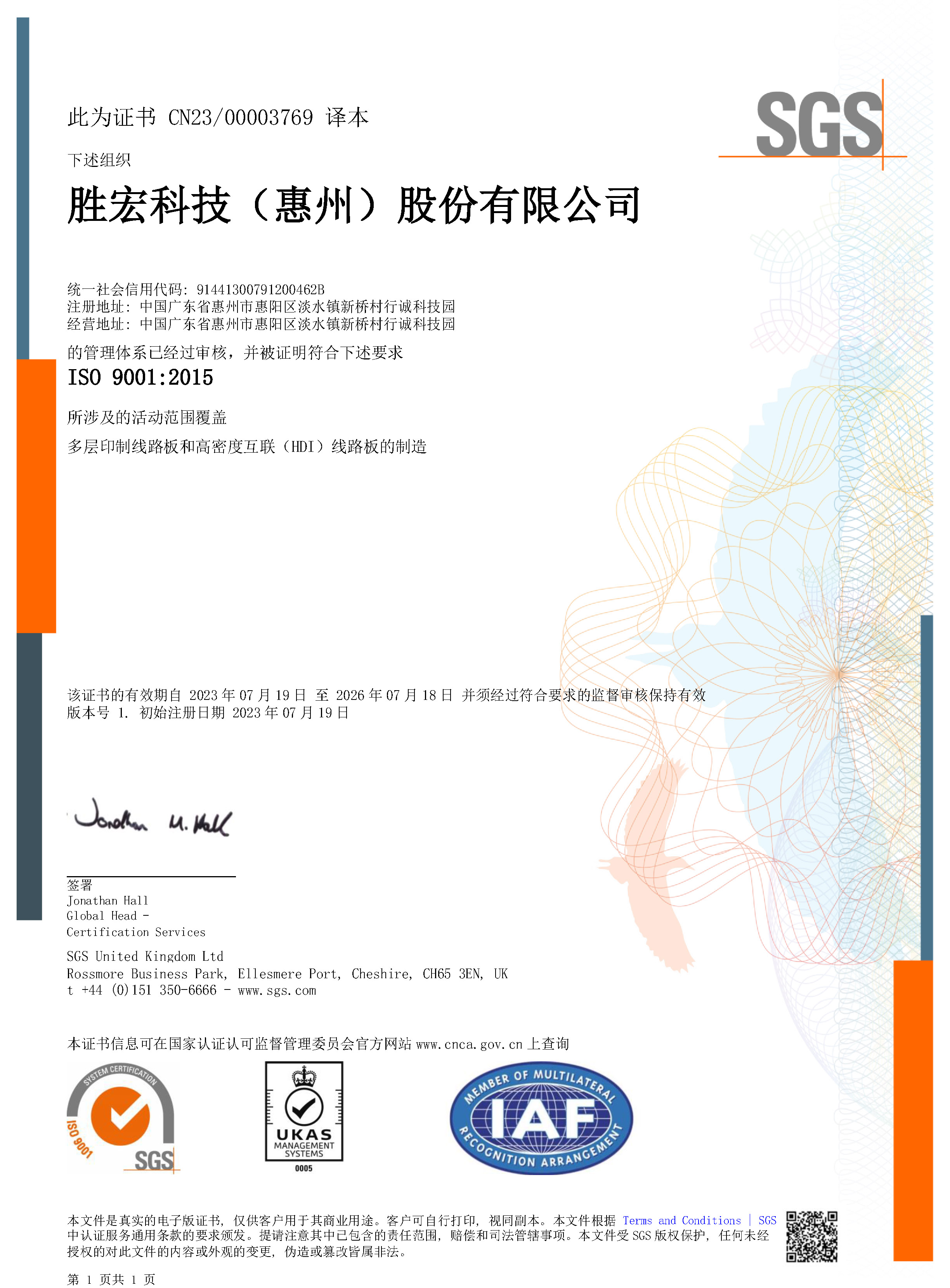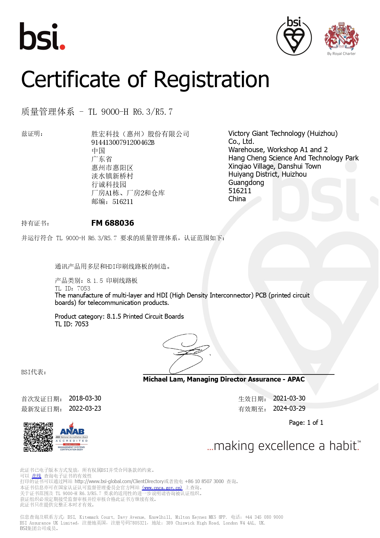 IATF169492016汽車行業質量管理體系證書